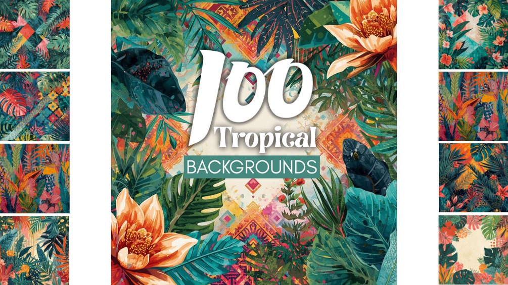100 Tropical Style Backgrounds (JPG, 1200x1200 px) – Vibrant Exotic Design Pack for Canva, Posters & Social Media
